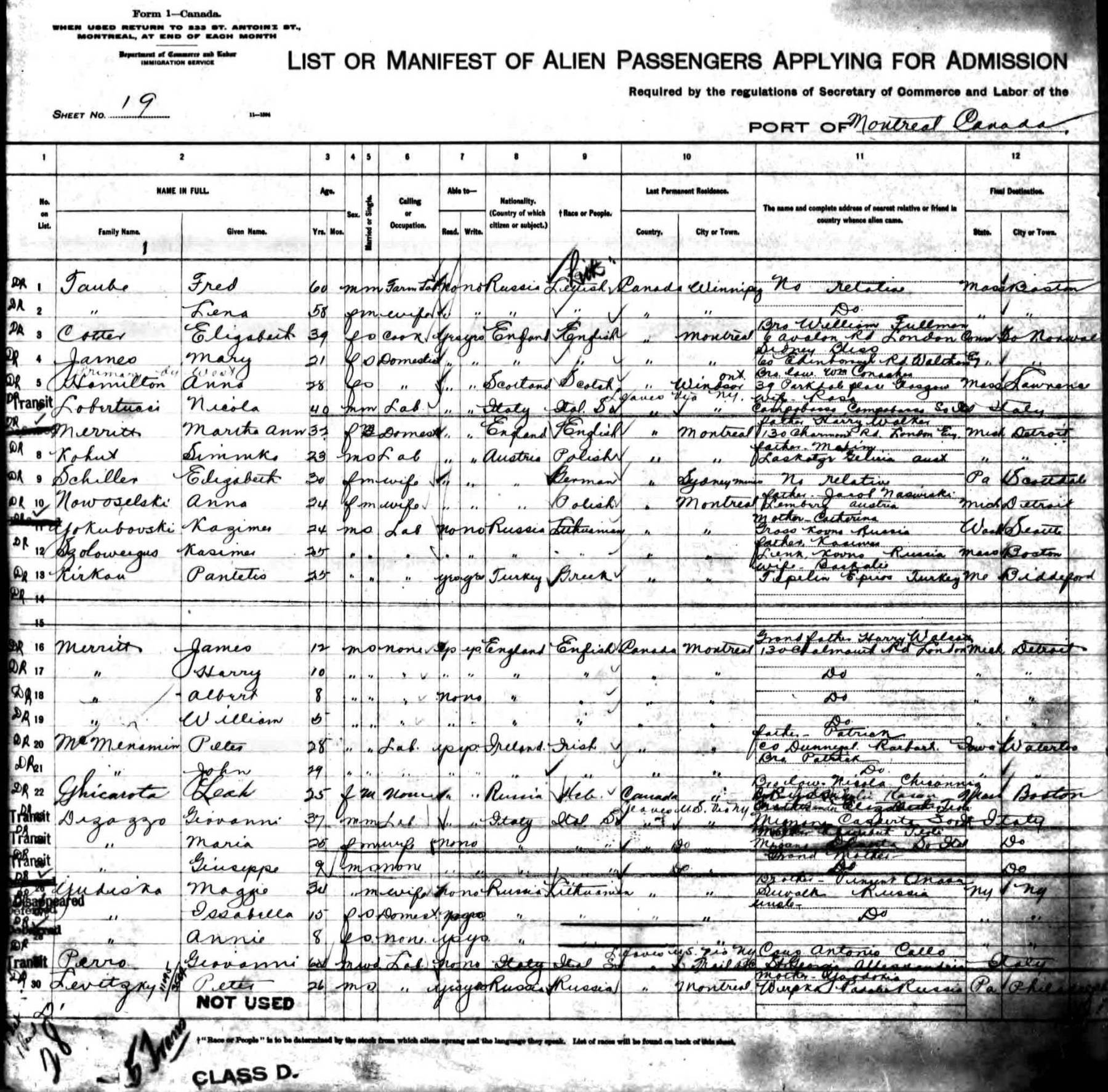 and named her final destination as Toronto.