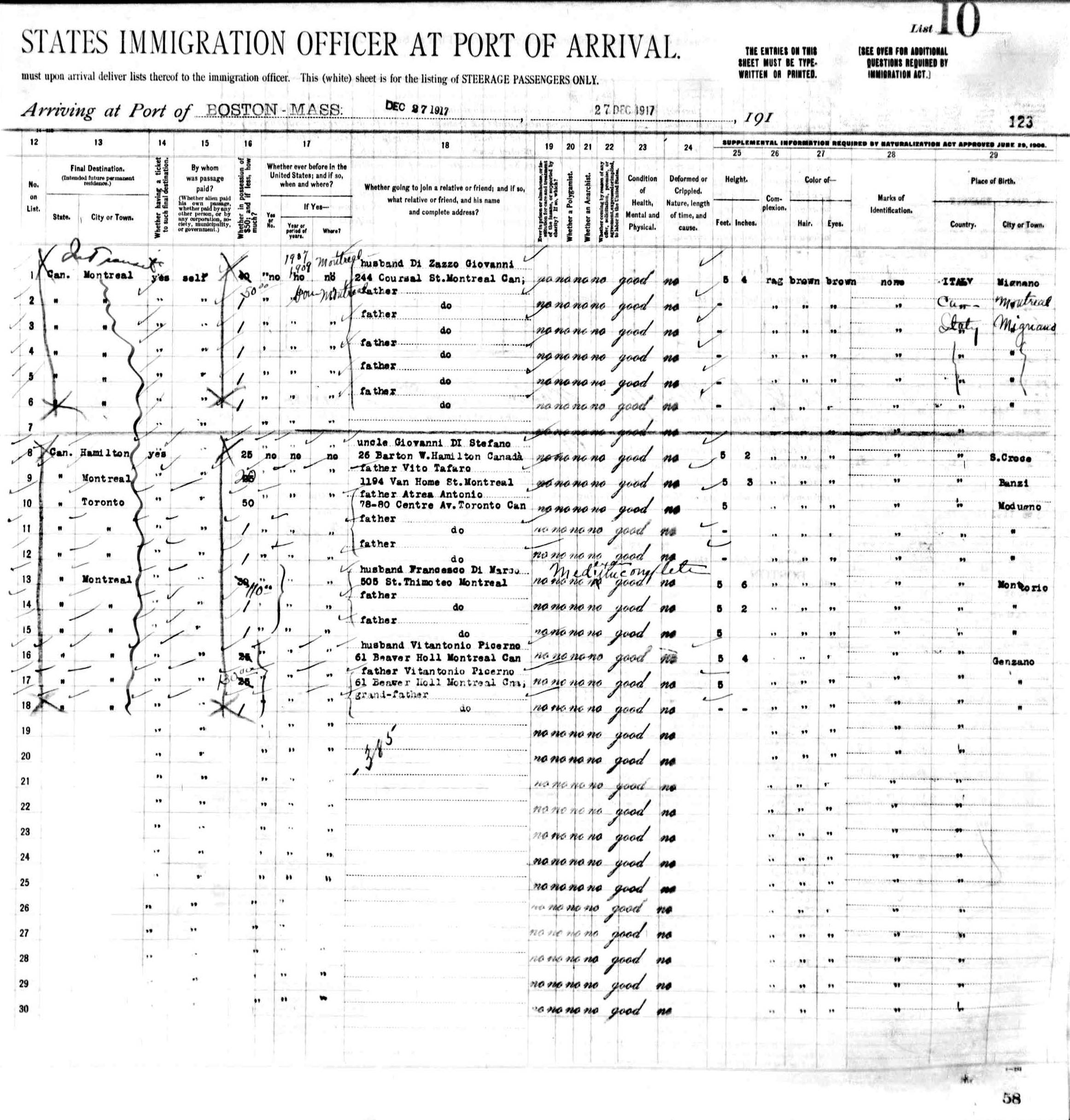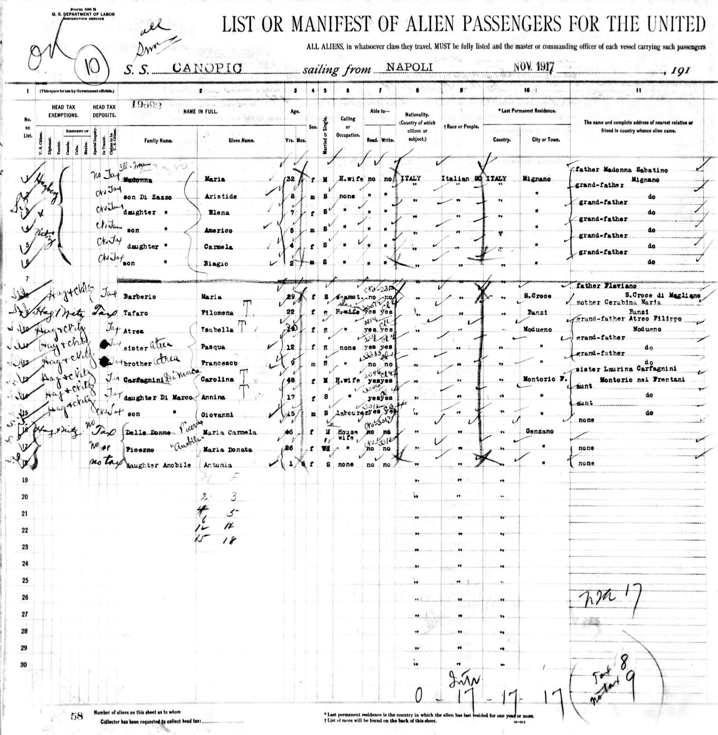 - daughter Carmela Di Zazzo, age 4, born in Mignano, Italy; and