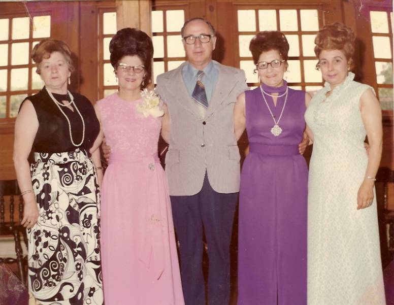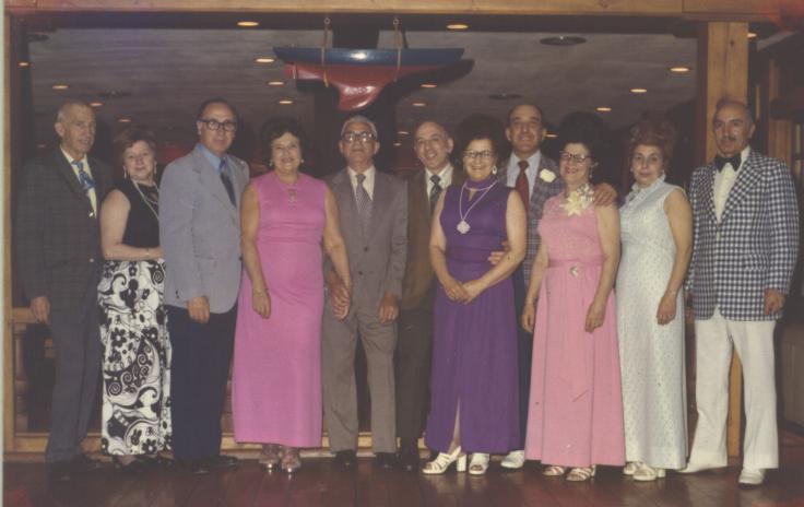 | [Left to Right] Ronnie Johnson & Rose (DiZazzo) Johnson, Carmen DiZazzo and wife, Patsy (Mary DiZazzo's husband, Mary had died by then), "Del" and Marie (DiZazzo) DelRossi, Jimmy and Polly (DiZazzo) Antonioli, Jennie (DiZazzo) Confalone & Charlie Confalone. | |