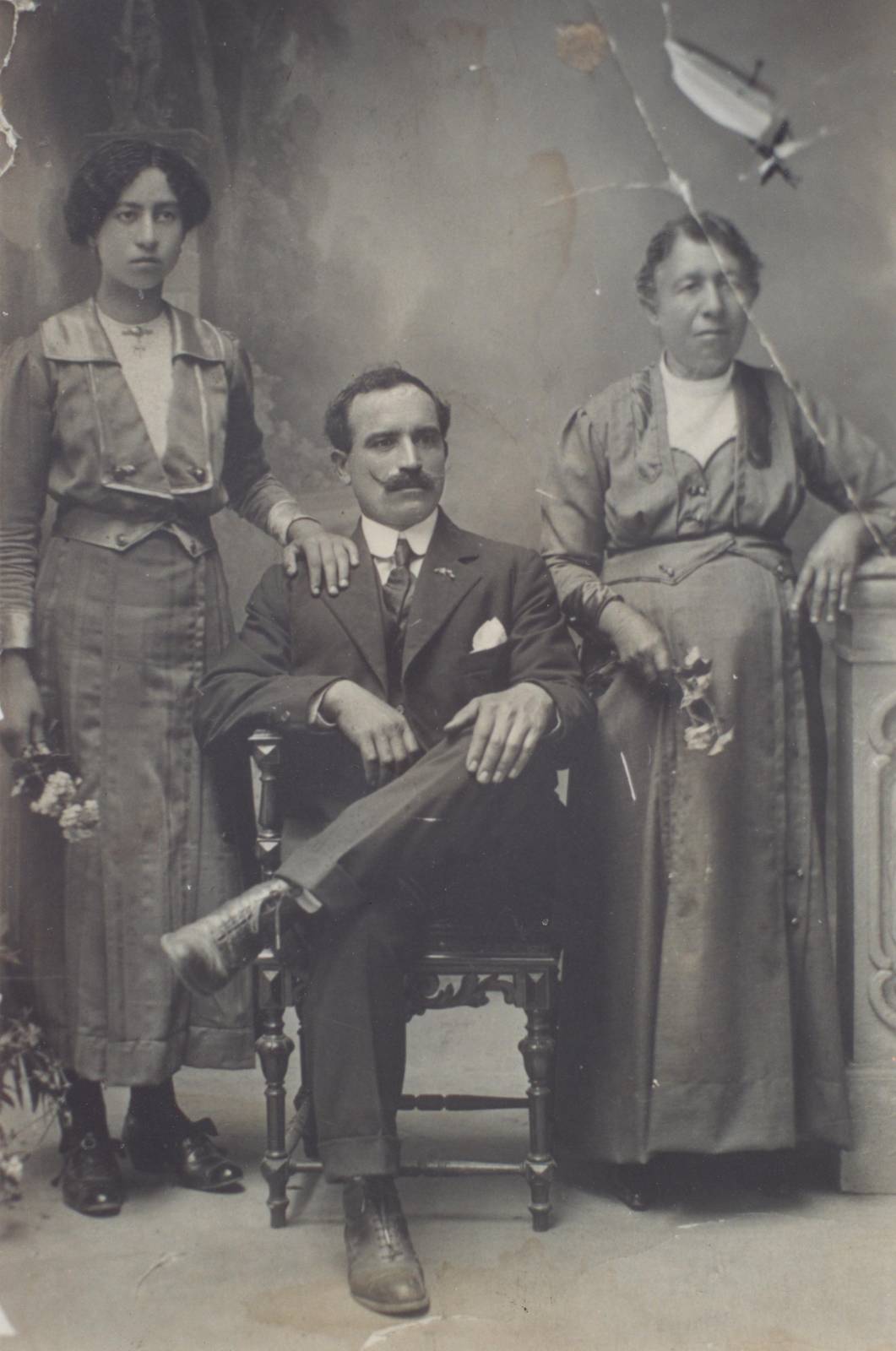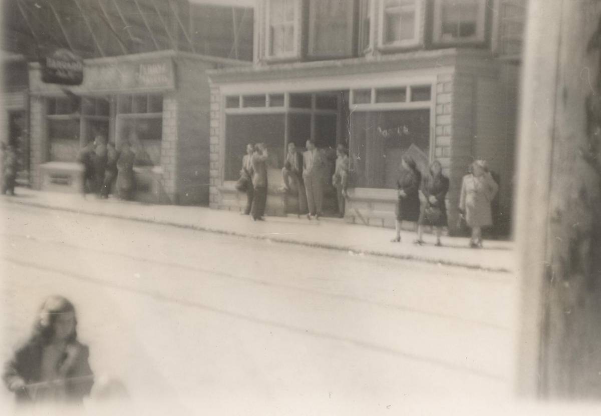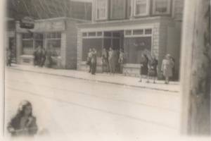 Poor quality photo, probably taken in the 1940s (possibly on the day of an Italian Feast) of Elm Street, Lawrence, showing where